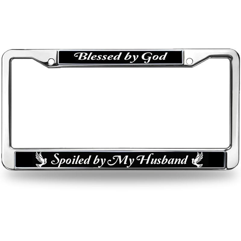 Blessed by God Spoiled by Husband License Plate Frame Metal Christian Angel Rattle-Proof License Plate Frame for Christian People