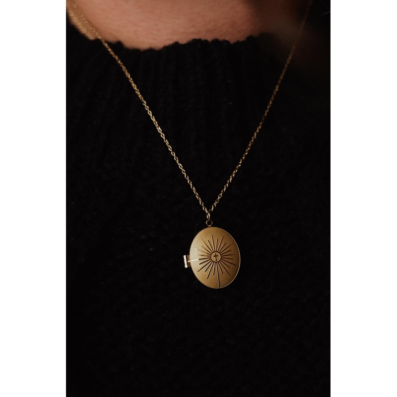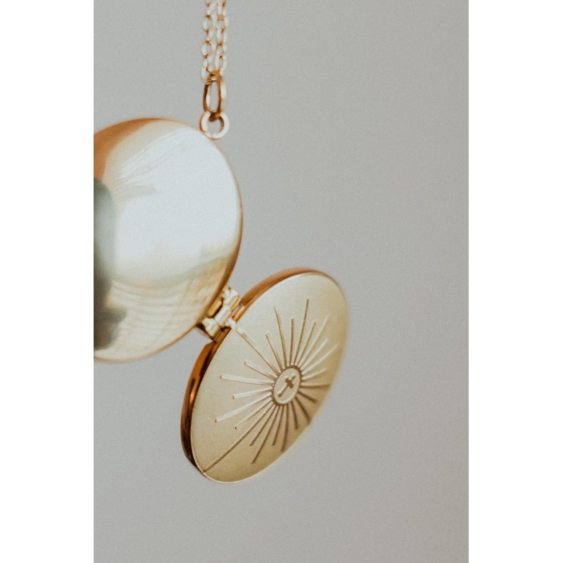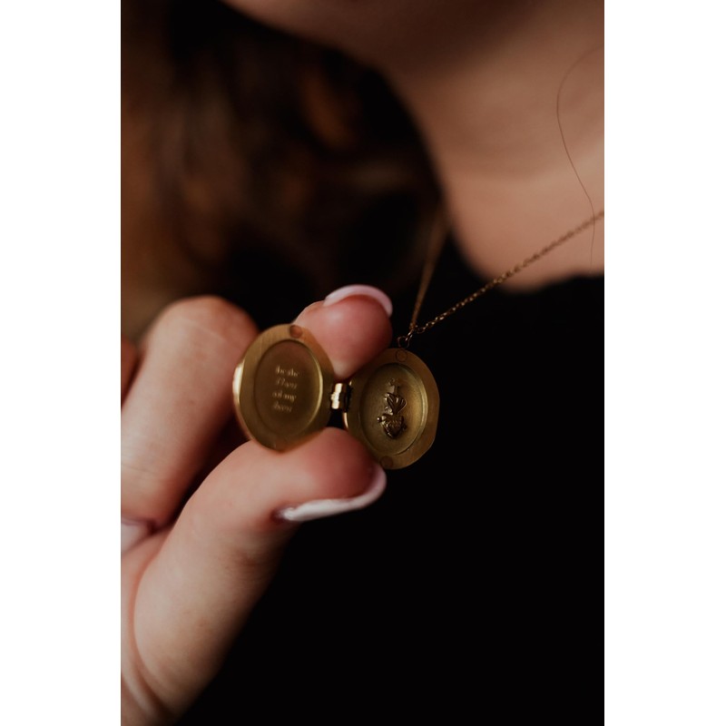 Blessed is She Gold Catholic Monstrance Necklace - Yellow Monstrance Gold Locket Necklace for Women, Religious Golden Locket Necklaces, Catholic Devotional Necklaces with Lockets for Women