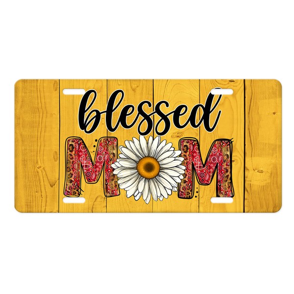 Blessed Mom Daisy Aluminum Front License Plate