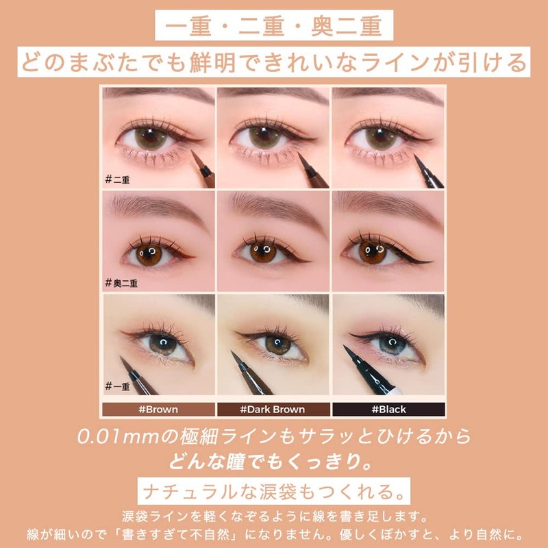 - Draw according to your preference: From ultra-fine 0.004 inch (0.01 mm) to thick lines up to 0.008 inch (0.2 mm), clean and sharp. Marker pen type makes it easy for beginners. Single, double, and doubled, make any eyelid look stylish