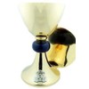 Here's a unique tribute to Our Lady - Our Blessed Mother chalice and paten set. Certainly acceptable for any mass, but especially nice for Marian Masses, Mother's Day, Weddings, and Baptisms. -- Brass/Gold Plate/Enamel -- 4 1/2" Dia x 8" H, 12 oz, 5 1/2" Dia Paten