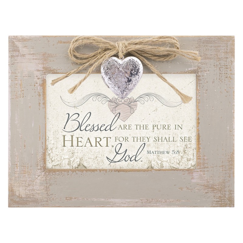 - Music box measures approximately 8 x 6 x 2.5 inches; Replace artwork with a 4 x 6 inch personal photo. Features scripture from Matthew 5:8.