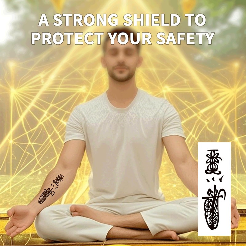 - DESIGN: Traditional Feng Shui prayer talisman pattern crafted as a temporary body art sticker with authentic spiritual symbolism
