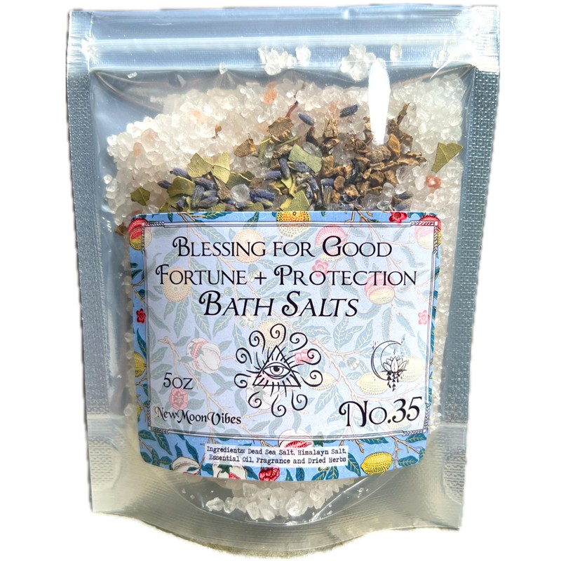 Blessing for Good Fortune + Protection Bath Salts Real Herbs Infused with Essential Oils Success Blessing Wealth Good Luck Armor Negativity Protection Spells Conjure Rituals