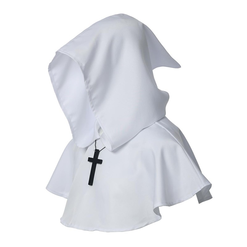 BLESSUME Medieval Hooded Cowl Cross Necklace (White)