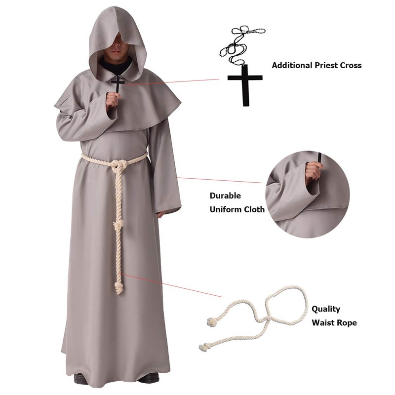 - ▶ Perfect for theater, theme party, Halloween, Priest costume, carnival, Medieval Monk cosplay, Reenactment Activities.