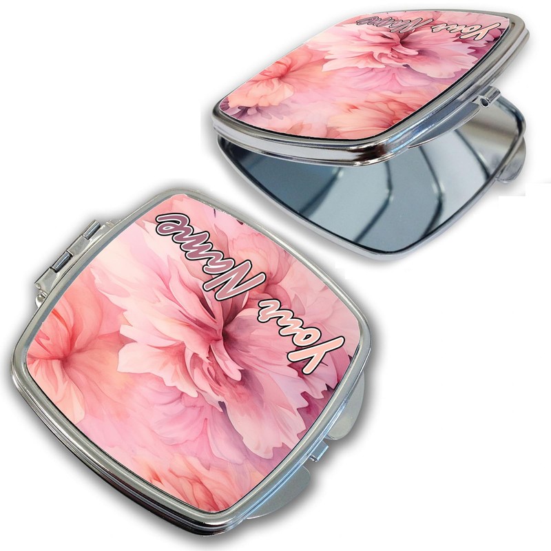 Bleu Reign Compact Personalized Pocket Mirror Custom Name Gradients Pattern Design Floral Elegance