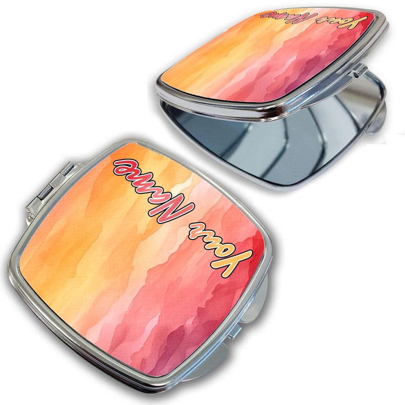 Bleu Reign Compact Personalized Pocket Mirror Custom Name Gradients Pattern Design Golden Hour Sunset