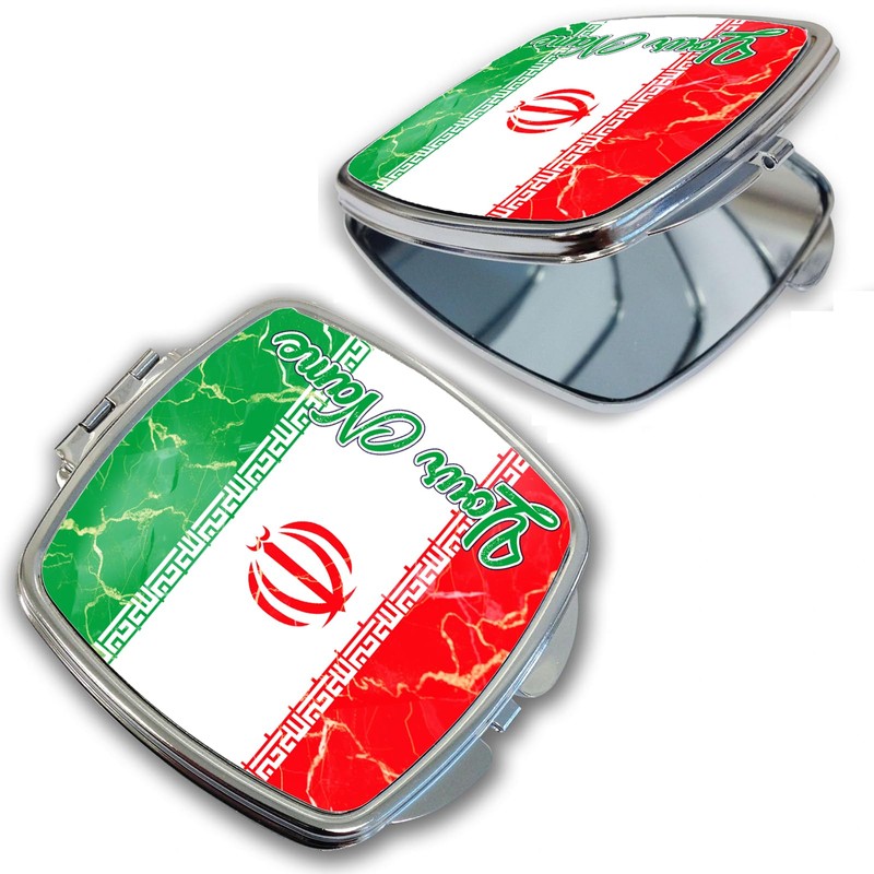Bleu Reign Compact Personalized Pocket Mirror Custom Name Iran Flag Marble Monogram