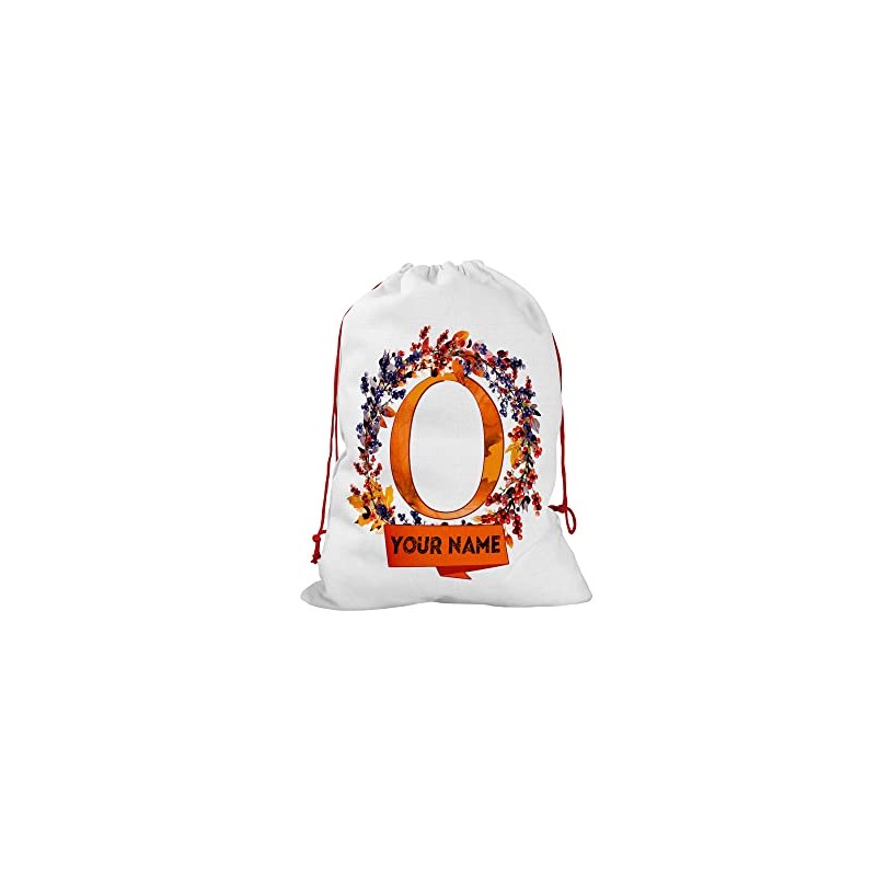 Bleu Reign Personalized Santa Sack Christmas Birthday Gift Wrap Bag Custom Name Beautiful Acorn Fall Autumn Wreath Monogram Letter O Reusable
