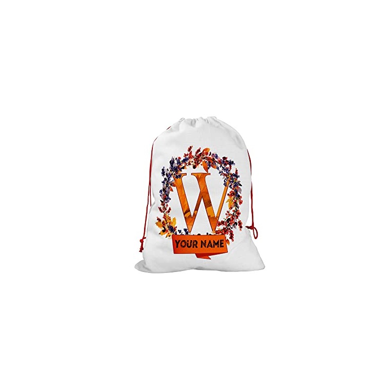 Bleu Reign Personalized Santa Sack Christmas Birthday Gift Wrap Bag Custom Name Beautiful Acorn Fall Autumn Wreath Monogram Letter W Reusable