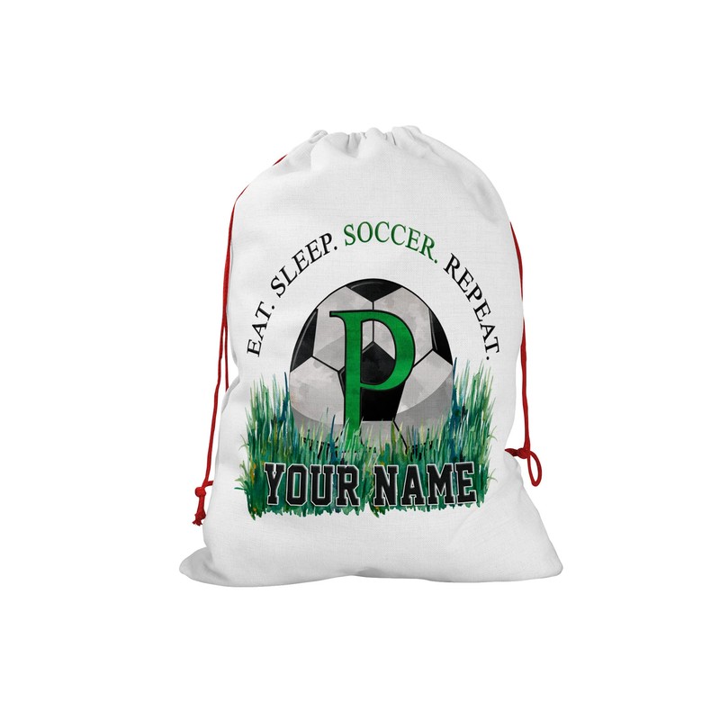 Bleu Reign Personalized Santa Sack Christmas Birthday Gift Wrap Bag Custom Name Eat Sleep Play Soccer Monogram Letter P Reusable