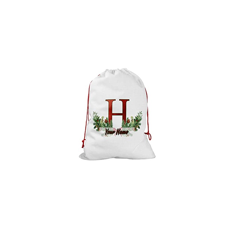 Bleu Reign Personalized Santa Sack Gift Wrap Bag Custom Name Christmas Winter Wreath Bough Monogram Letter H Reusable