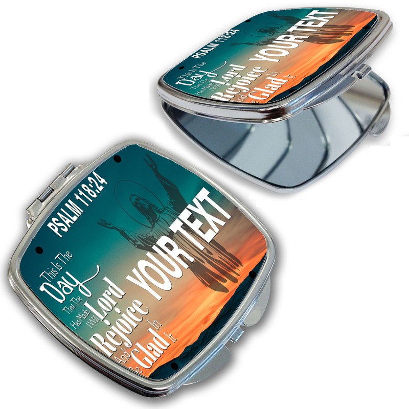 BleuReign(TM) Personalized Bible Series Rejoice Verse Psalm 118-24 License Plate Compact Mirror