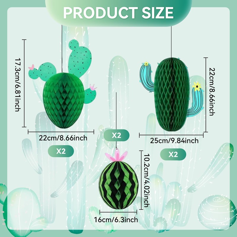 - Package Includes: Enhance your celebrations with our set of 6 cactus honeycomb balls in three sizes: 9.84", 8.58", and 6.1". Perfect for parties, events, or home decor, each size includes 2 pieces for versatile styling and creative displays.