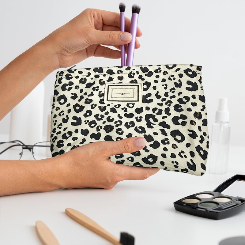 • Leopard Pattern Makeup Bag: our leopard print makeup bag is perfect for organising your cosmetics, toiletries and essentials, the durable zip closure keeps your belongings secure and allows you to travel in style.