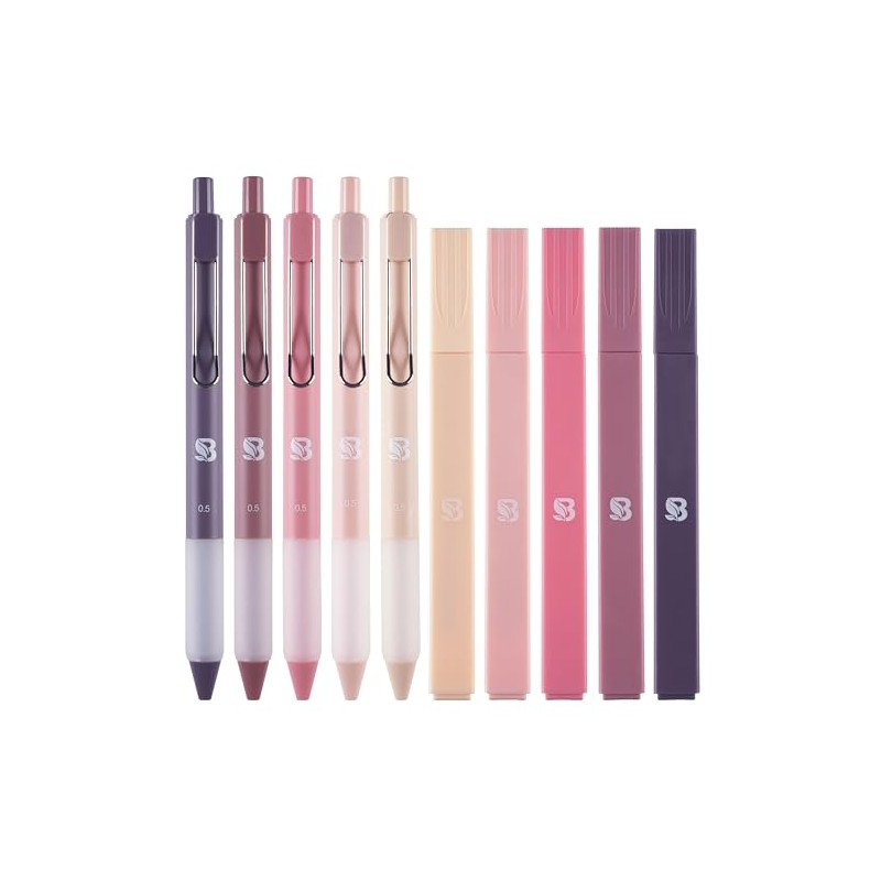 BLIEVE - Aesthetic Highlighters and Gel Pens with Black Ink And Soft Tip, No Bleed Dry Fast Easy to Hold, for Bible Journaling Planner Notes School Office Supplies 10 pack (Morandi)