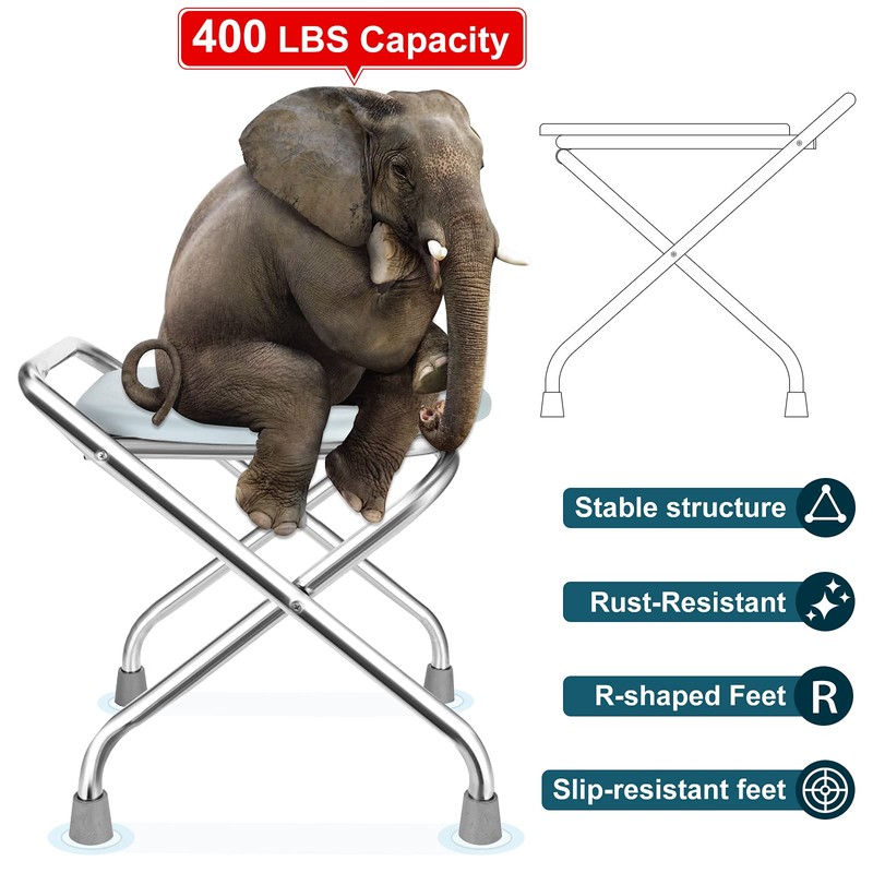 - SUITABLE FOR ALL AGES: It only weighs 4.9 pounds and has a stainless steel frame, rust resistance and durability. With its capacity to hold weight up to 400 lbs, this portable toilet seat is suitable for various ages.