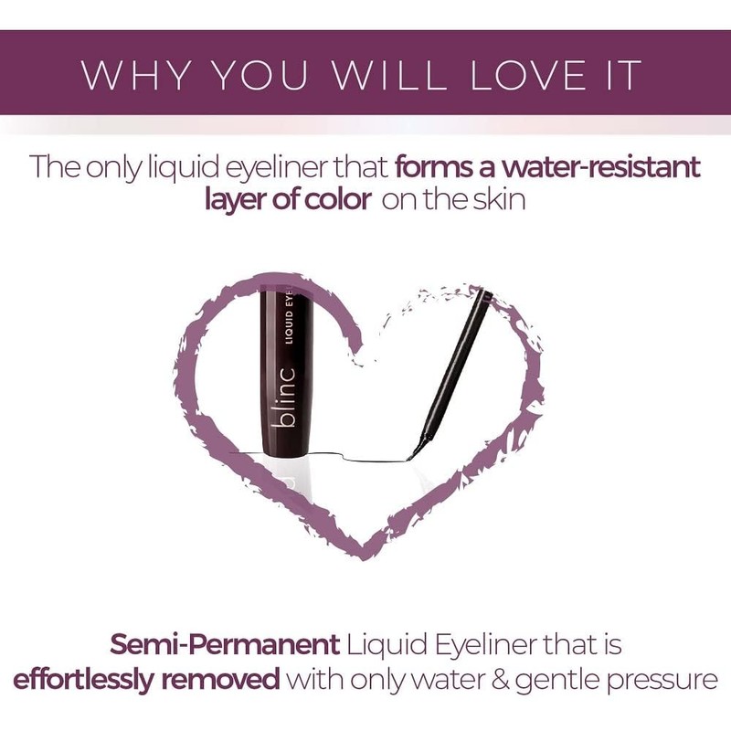- blinc Eyeliner forms a water-resistant layer of color that contours to your eyes. Since blinc is not a cosmetic paint like conventional eyeliners, it doesn't fade, smudge, run or flake, even if you cry or rub your eyes.
