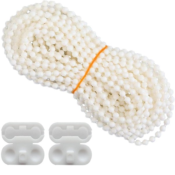 - Specifications: 1 x Roller Bead Cord 2 x Chain Connector Color: White Size: Roller Bead Cord Length 10m;Bead Diameter 4.5mm;Chain Connector: 18*7*7mm Material: POM plastic material