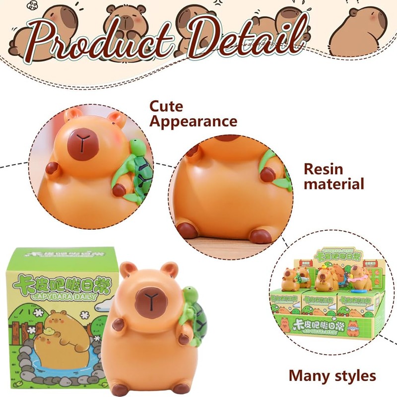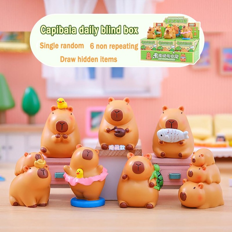 - Capybara blind box: each Capybara blind box is randomly arranged. Each series has the hidden edition. The chance to get a hidden issue is about 1 in 144 blind boxes, so if you get them, you are very lucky! They are so rare!