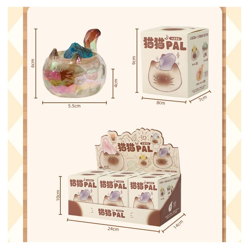- What's in the Box: The blind box contains a random figure from Siamese cat cup with crystal stones series. Each blind box only contains ONE figure. No one, including us, knows what's inside. This collection contains 7 blind box figures, one of them might be the secret edition.