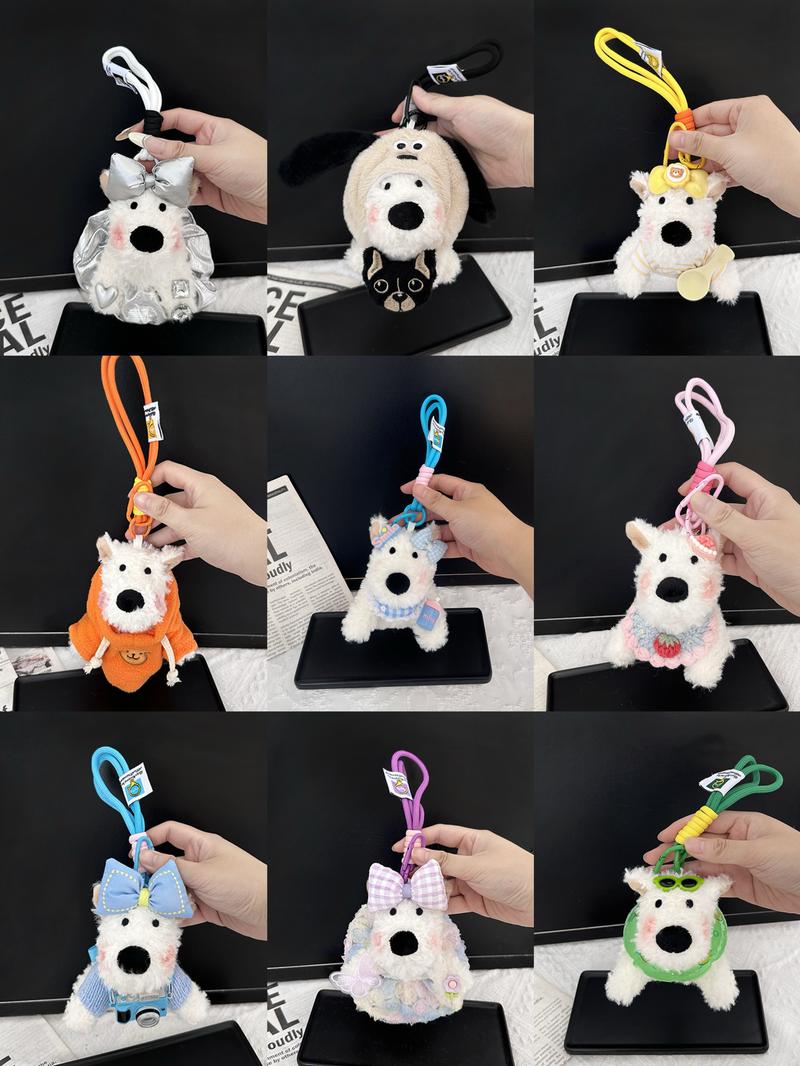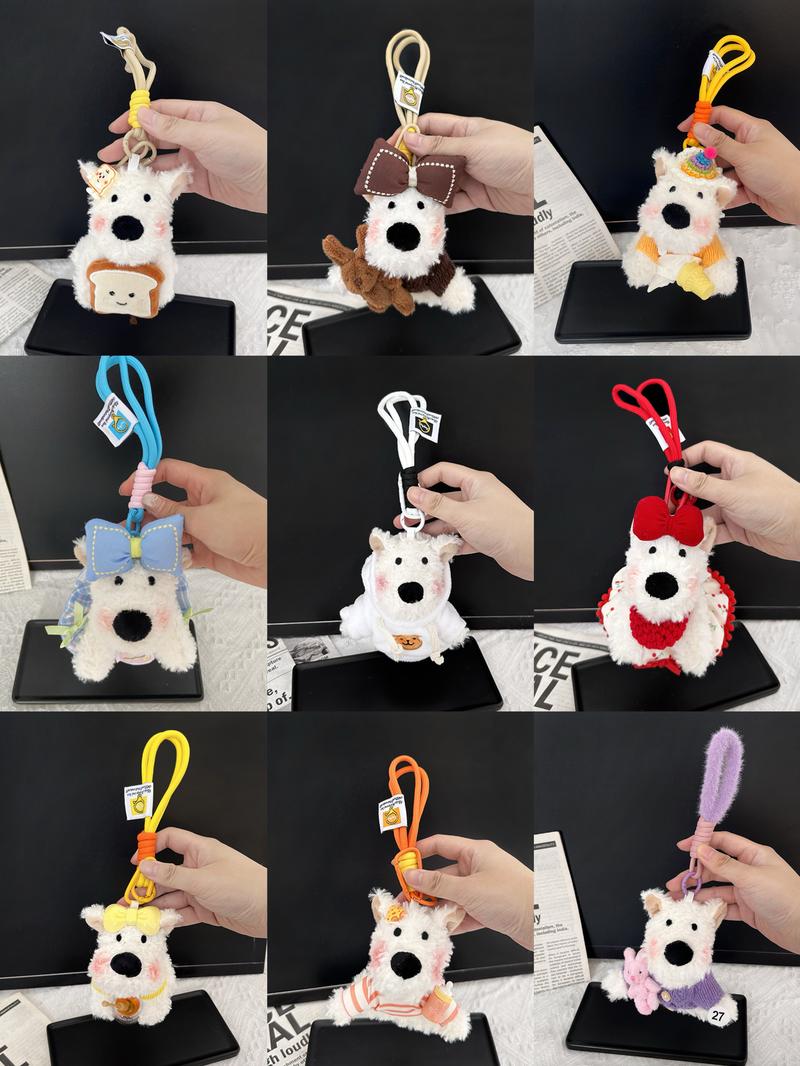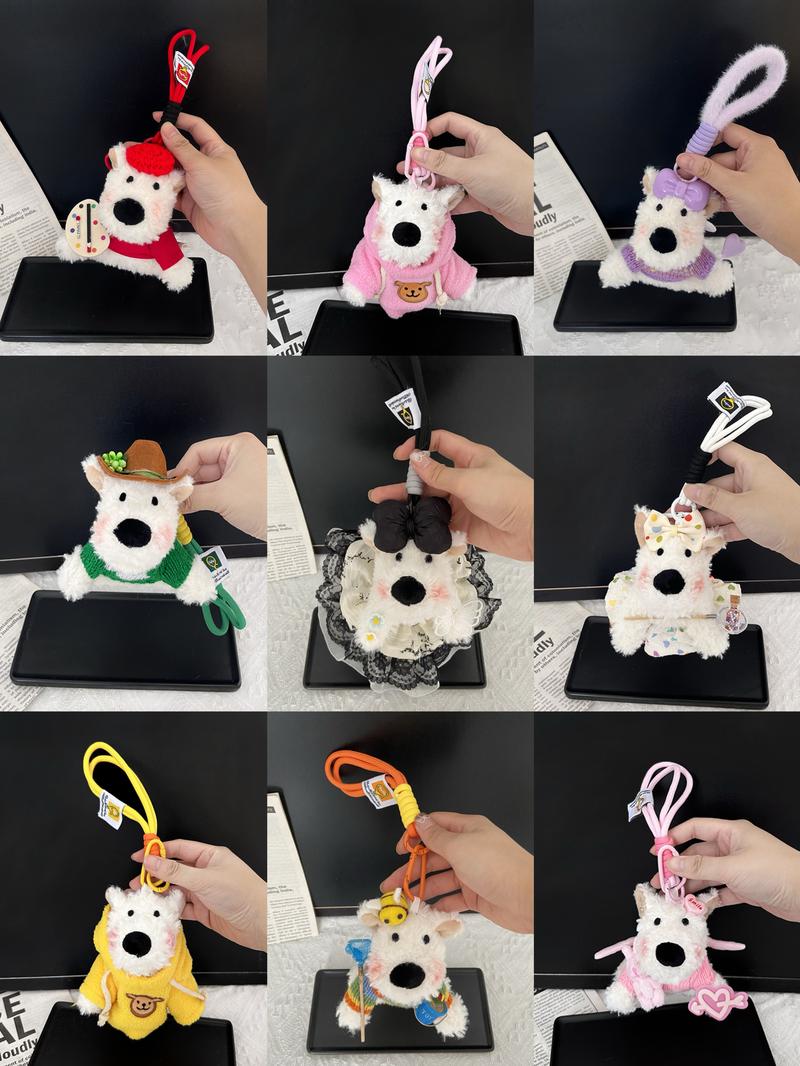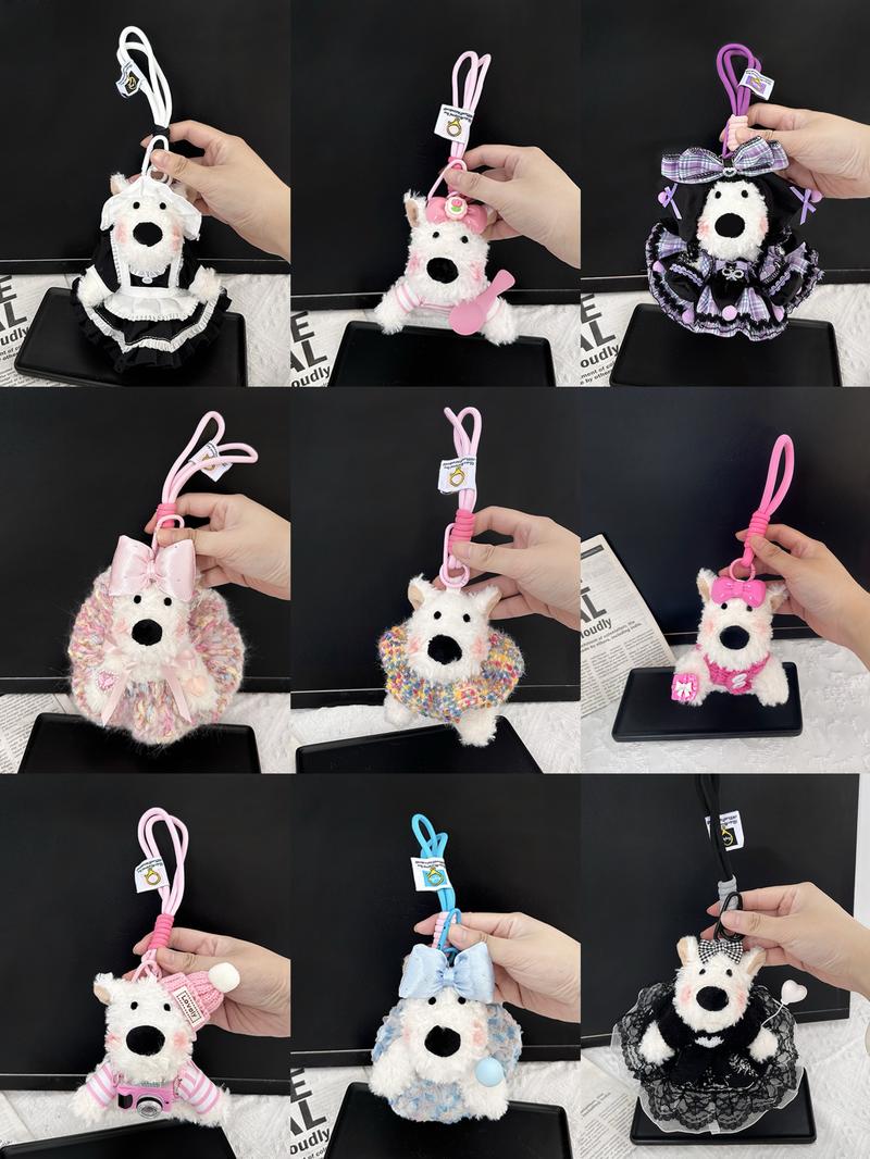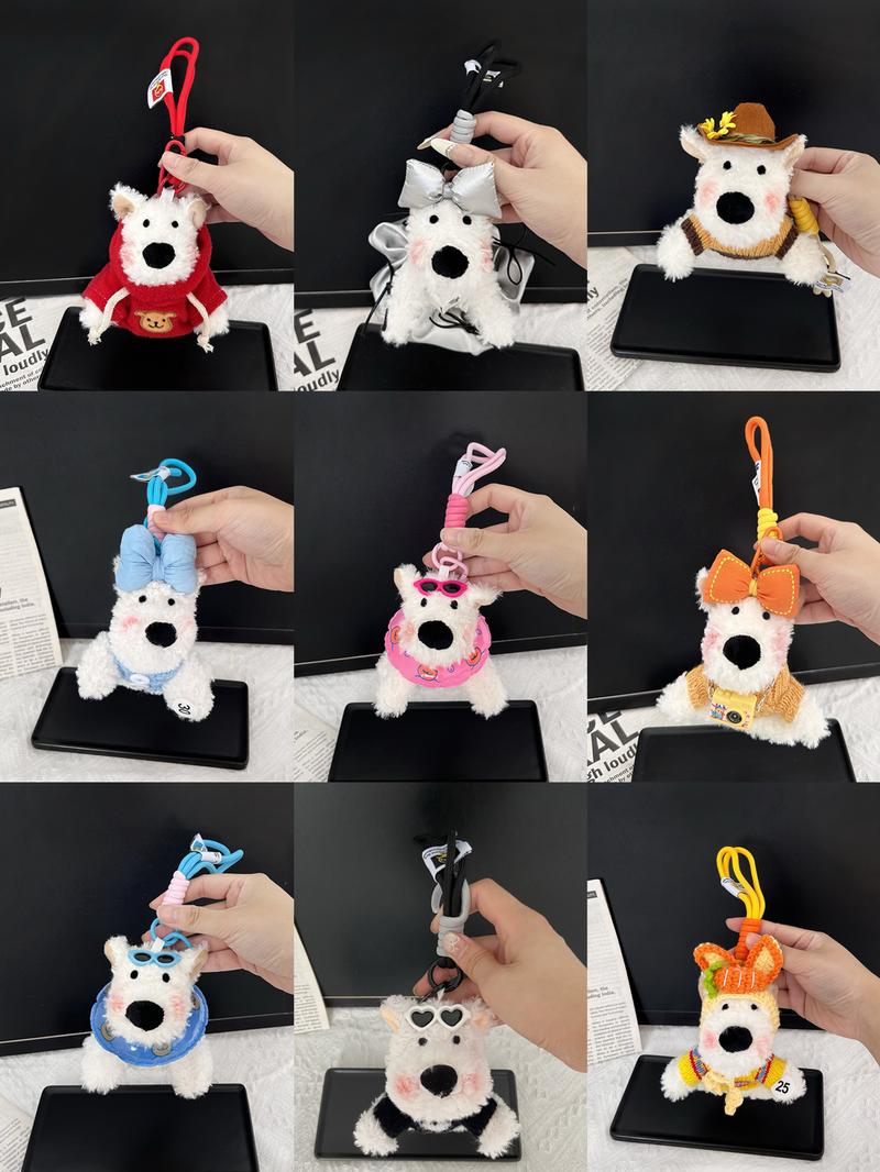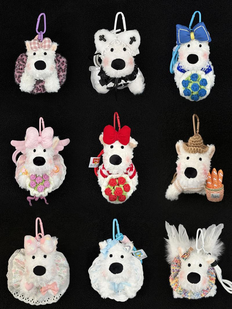 Blind Box: Handmade Puppy Plush Keychain Phone Charm Car Charm,West Highland White Terrier Puppy Plush Keychains & Charms,Over 100 Styles! Pink Cute - Quantity: 1 pc, Styles: Random Styles+Rich Keychain