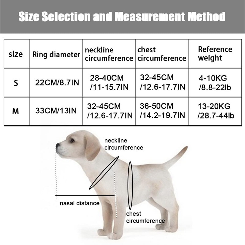 This blind dog Ring helps blind or visually impaired dogs prevent them from bumping into walls, furniture and other obstacles. Before purchasing, please measure the dog's nose distance and chest circumference, and choose your pet crash ring, the size as shown in the picture.