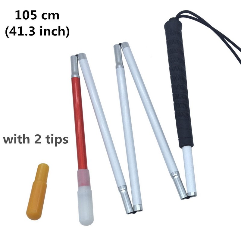 Blind White Cane Folding 5-Tier Aluminum, Cap (2 Pieces) (Black Rubber Grip, 43.3 inches)