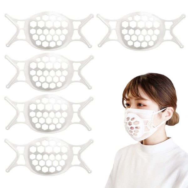 Blinda.m Super Soft Mask, Anti-Breath Inner Frame, Bracket, Comfortable, Support, Lipstick Protection, Pack of 5 (White)