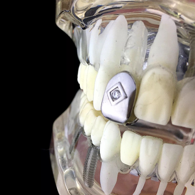Add some dazzling bling to your tooth with this single cap one top tooth grillz. Beautiful blinged solid 925 sterling silver. This piece is stamped 925 on the back side of the tooth.