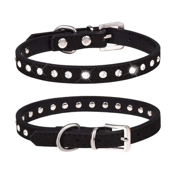 Bling Crystal Dog Collar with Leash Set Cute Rhinestone Bone Tag Jeweled Soft Suede Leather Cat Puppy Dogs Collar and Leash Combo Set (Black, L 25 * 1.5CM)
