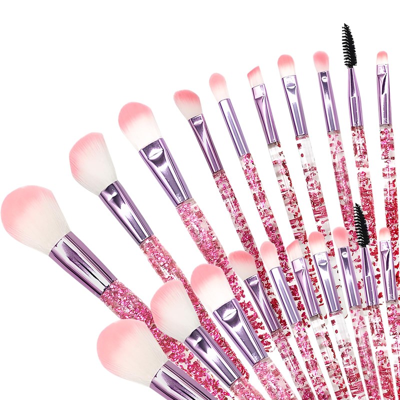 - The unique transparent handles of these aesthetic cosmetic brushes are not only durable but also infused with shiny materials, offering a delightful and surprising makeup experience.