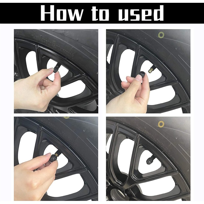 Installing air valve caps for tires only takes a few seconds. Car tire caps are easy to grab ahold and remove or put back on, easily screw onto your vehicles. High quality bling tire valve caps can hold on through rough terrain, snow, ice, car tire valve caps let you save worry, ease!