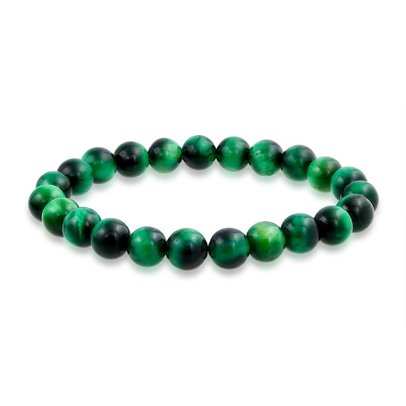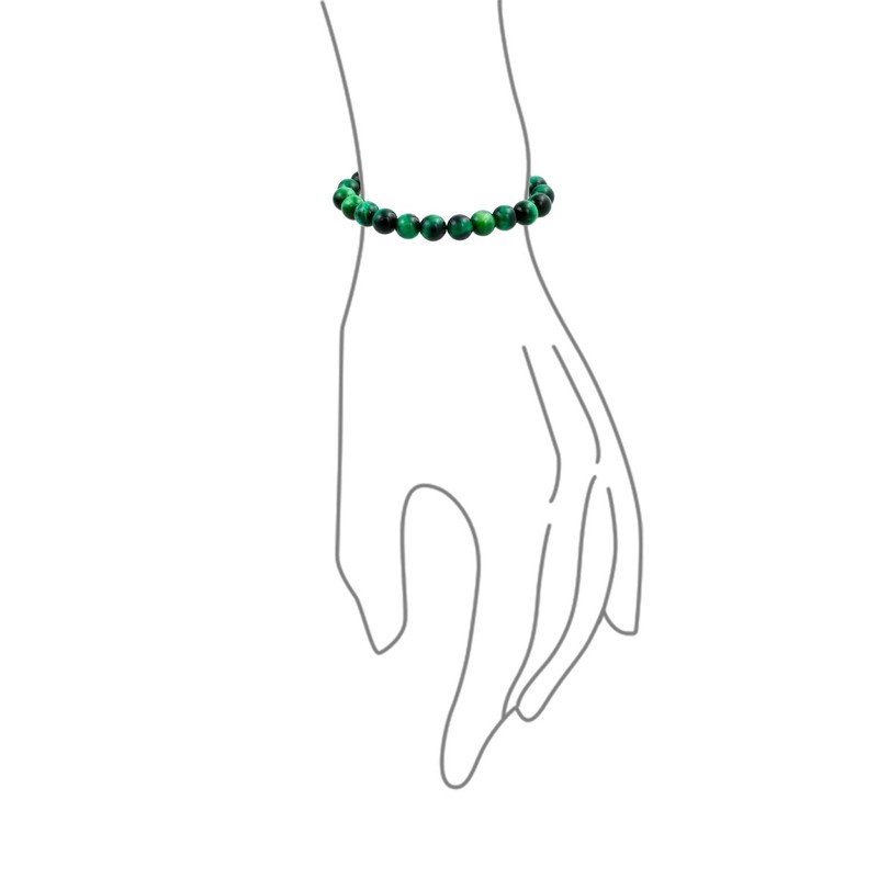 - Ward off negative energy and enhance your Boho style with this forest green Tiger-Eye gemstone stretch bracelet. Mix and match to create your unique look. The deep green gemstone beads are stretchable for a comfortable fit.