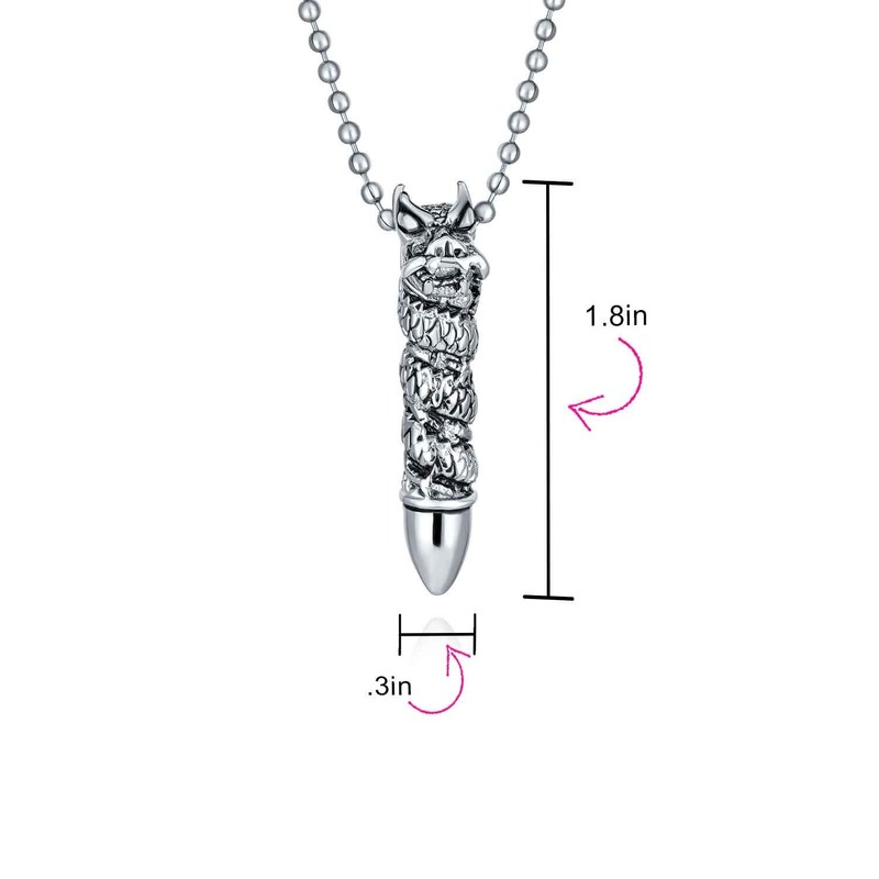 Bling Jewelry Tribal Viking Strength Bullet Pendant Necklace For Men Black Oxidized Silver Tone Stainless Steel