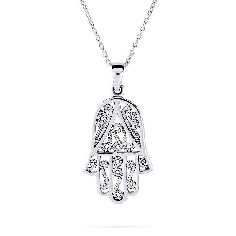 Bling Jewelry Yoga Delicate Filigree Swirl Amulet Talisman Fatima Hand of God Hamsa Pendant Necklace for Women for Teen .925 Sterling Silver
