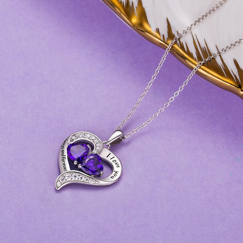 - Meaning of the Heart Necklace: this elegant heart necklace is inlaid with two 5A cubic zirconia birthstone, combining the classic design and engraving with the romantic message: I love you always and forever, which will be a perfect gift for your loved ones, when she wear this beautiful birthstone heart necklace, she will have a reminder that your love for her is forever.This romantic attribute makes this necklace very suitable for Valentine's Day.