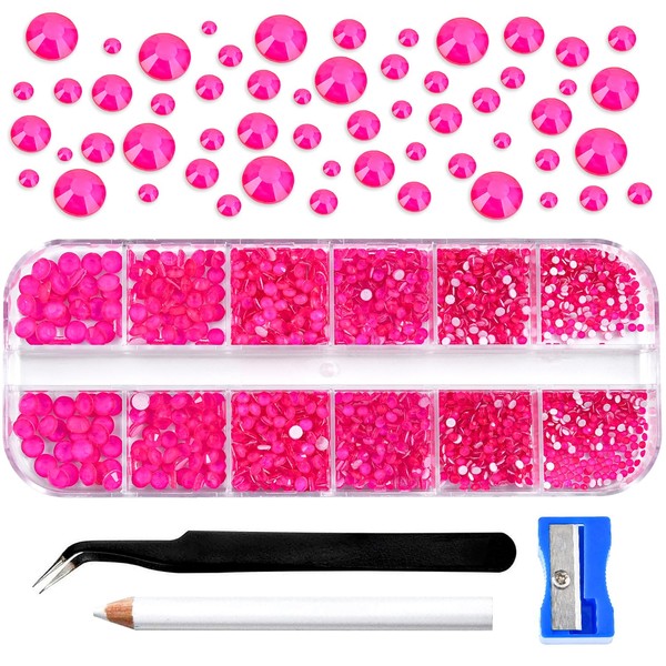 Blinginbox 2100pcs Rhinestone For Nail Art Phone wallet Clothes Shoes Round Gems Flatback Glass Stones With Tweezers Pen Sharpener SS4-20 Mix 6 Size 1.4-4.8mm Rose Neon