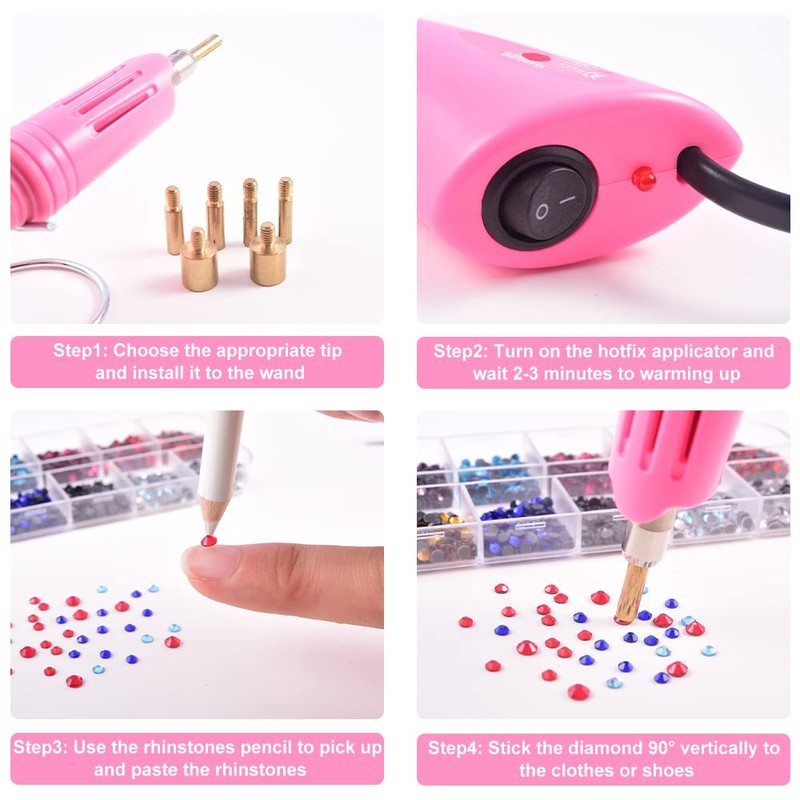 BLINGINBOX Hotfix Applicator Tool 2 Boxes of 4000 pcs Rhinestone with Flat Back Gems Round Hotfix Rhinestone for Clothes and Shoes