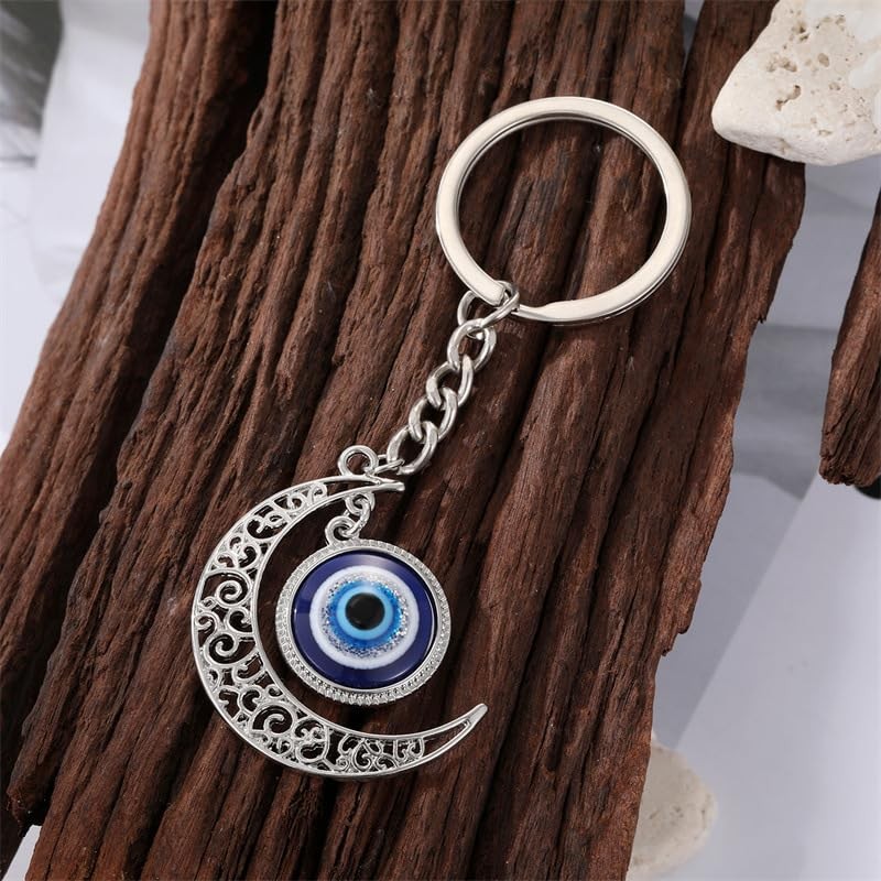 BlingNuts Silver Crescent Moon & Evil Eye Keyring Key Chain Bag Charm Good Luck Protection Amulet Jewelry Gifts