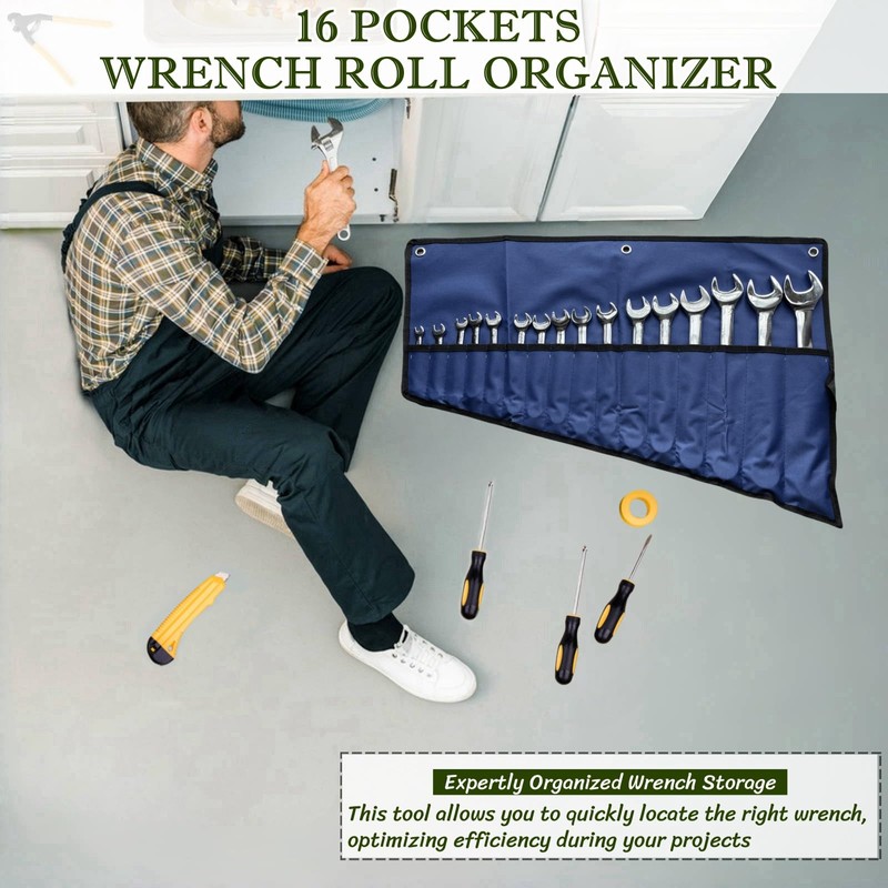 With 16 specially designed pockets, each tailored to securely hold various sizes of wrenches, this organizer ensures your tools stay neatly organized and easily accessible. No more wasting time searching for the right wrench; with this pouch, you can effortlessly locate the tool you need, saving valuable time and effort during your projects.
