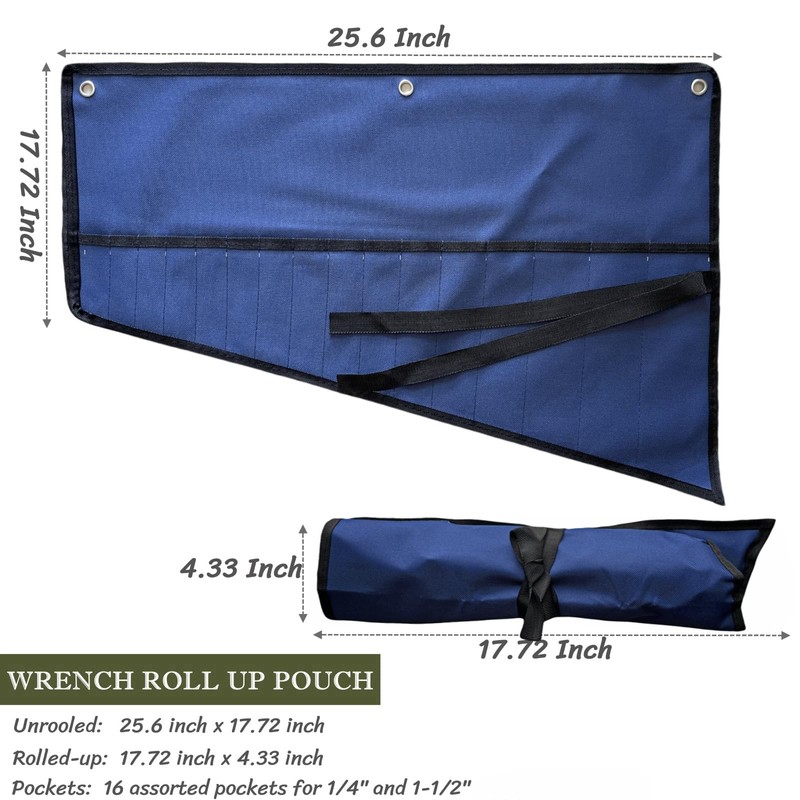 BLIRITEL 16 Pockets Wrench Roll Up Pouch, Wrench Roll Organizer and Tool Storage, Rolled Tool Pouch for Mechanic Electrician Craftsman (Blue)