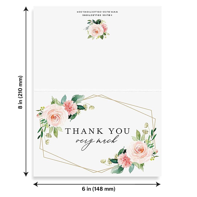 - STYLE: Features a beautiful blush and greenery geometric floral design — these thank you cards paired with other matching items in our shop helps build harmony and cohesion which will be sure to impress your guests!