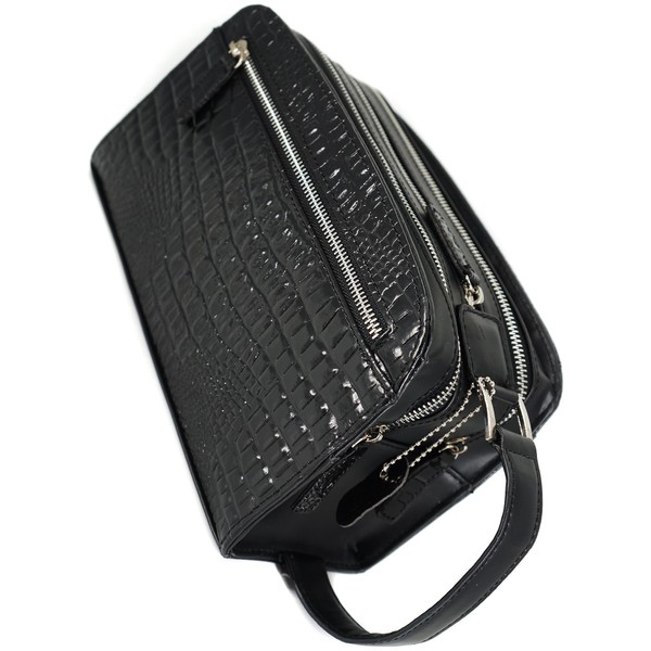 - Popular large capacity square box type second bag. A second bag overflowing with a luxurious crocodile embossing of high quality cowhide leather. The freestanding box design has a substantial feel and a heavy feel. The square type heavy form is designed to reveal individual storage pockets when the triple zipper is opened. Both the front and back have zipper pockets for convenient storage of small items. There is also a zipper pocket in the center and there is a gusset pocket so you can store items that you want to store somewhat bulky. There are 2 main zippered storage spaces, both have a large amount of storage space. In addition, each pocket is equipped with both sides, so you can store small items and other items in order
