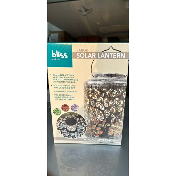 Bliss outdoors large solar lantern brushed silver tropical flower Pattern