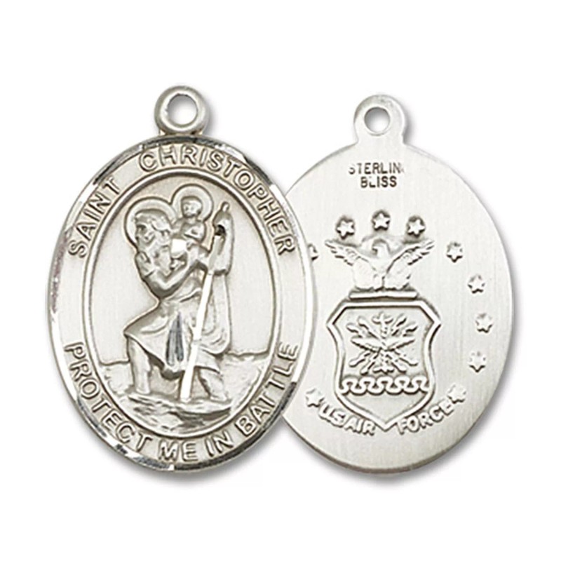 Bliss Sterling Silver Saint Christopher Air Force Medal Pendant Necklace 24" Chain