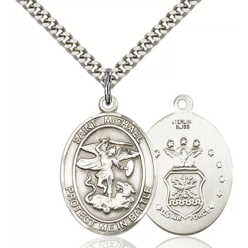 Bliss Sterling Silver Saint Michael Air Force Medal Pendant Necklace 18" Chain GiftBox
