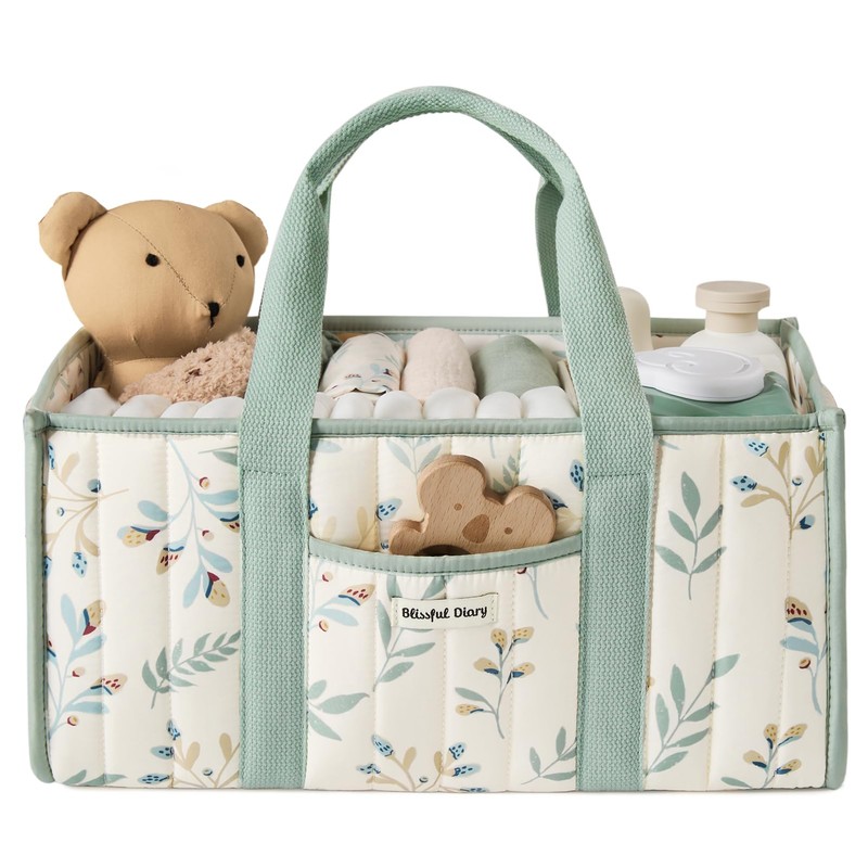 - Organize Your Diaper Essential: Designed for busy parents, this quilted floral caddy features compartments for diapers, wipes, and creams – perfect for home or travel.