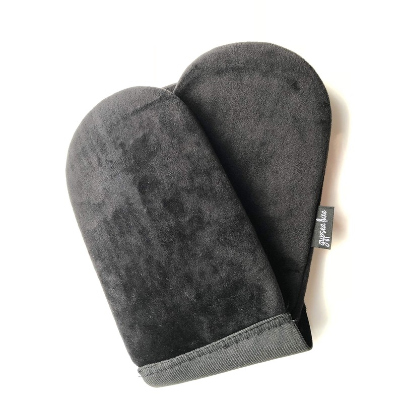 - Your hands won't get dirty! You can apply the back by yourself. Innovative shape for self-tanning application mitts that are talked about in Europe. Cream, mousse, gel and lotion type can be used on any textured tanning product.